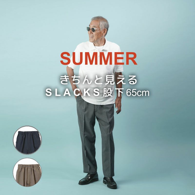 人気のきちんと見えるスラックスに、夏仕様の素材ができました。薄手でさらりとしており、暑い夏でも涼しく過ごせます。