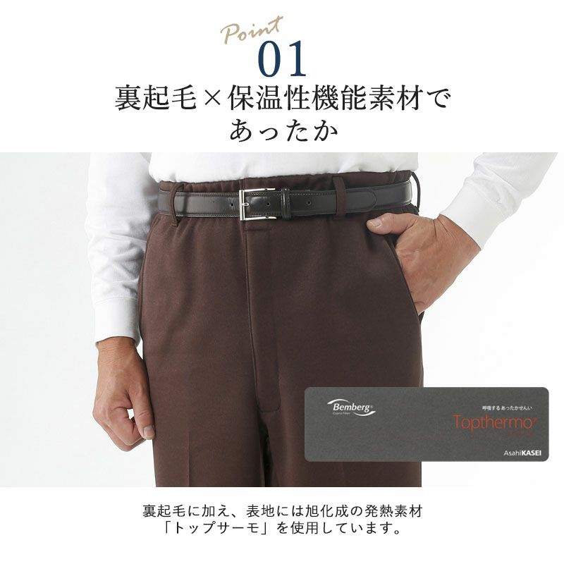 日本製 紳士 トップサーモ裏起毛 スラックスパンツ 2色組 股下60cm/65cm/70cm