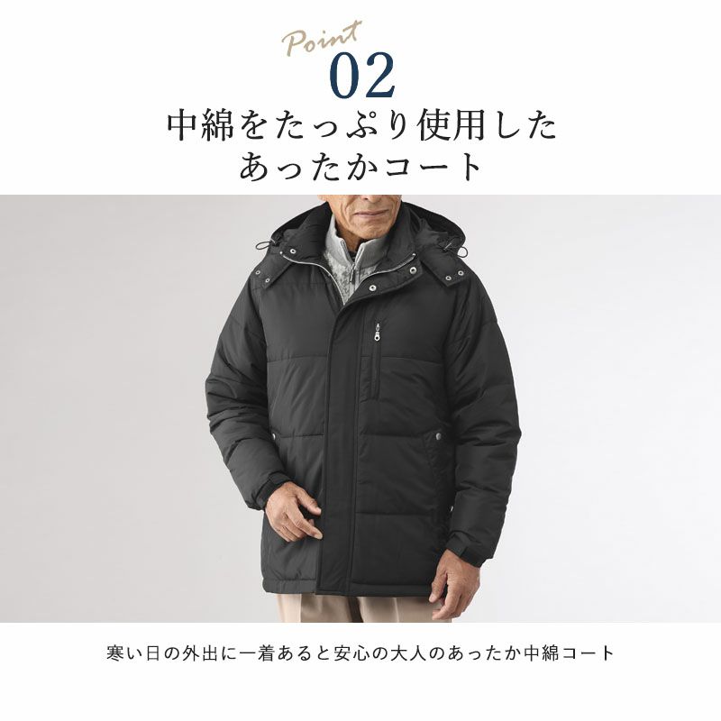 フード付き中綿ハーフコート