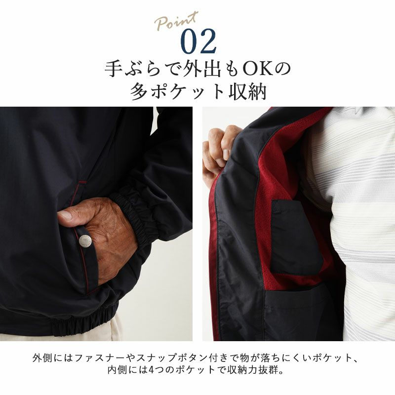 3シーズン対応ロゴ入り裏ベロアブルゾン。秋から春まで使える、はっ水加工や7ポケット仕様で機能的なブルゾンです。手触りがやわらかく滑らかな裏ベロアが心地良く、高級感があります。