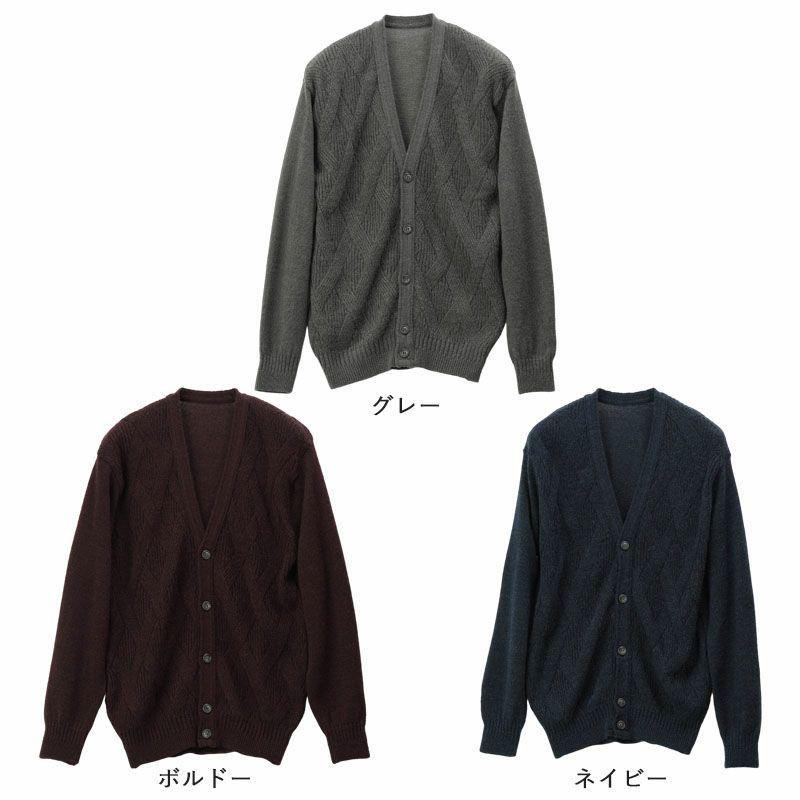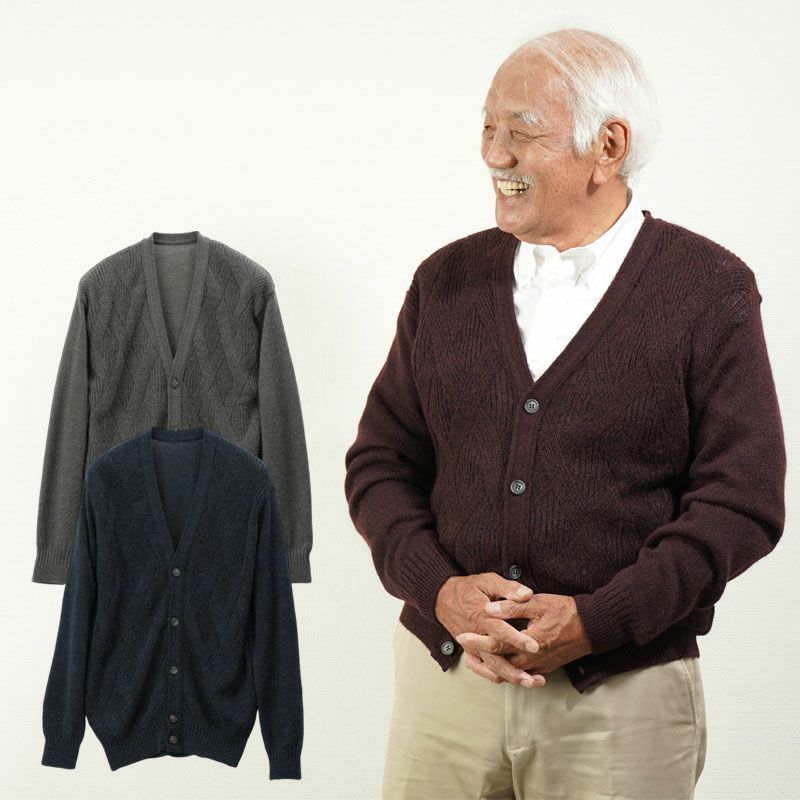 日本製 洗える モヘヤアルパカウール 地柄Vネックカーディガン