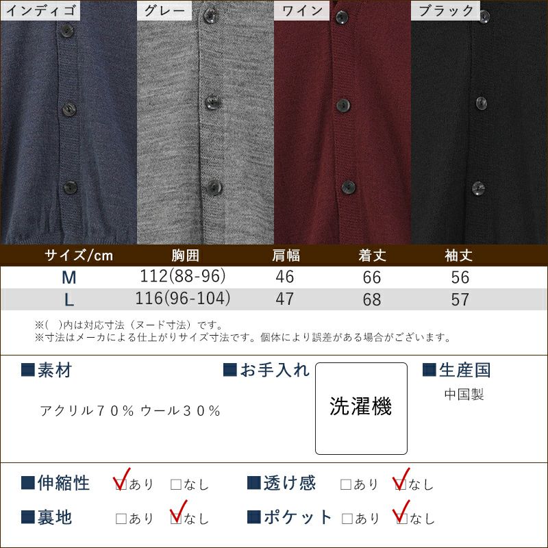 洗濯機で洗える ウール混 ベーシックカーディガン