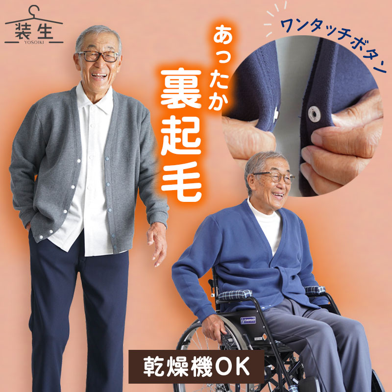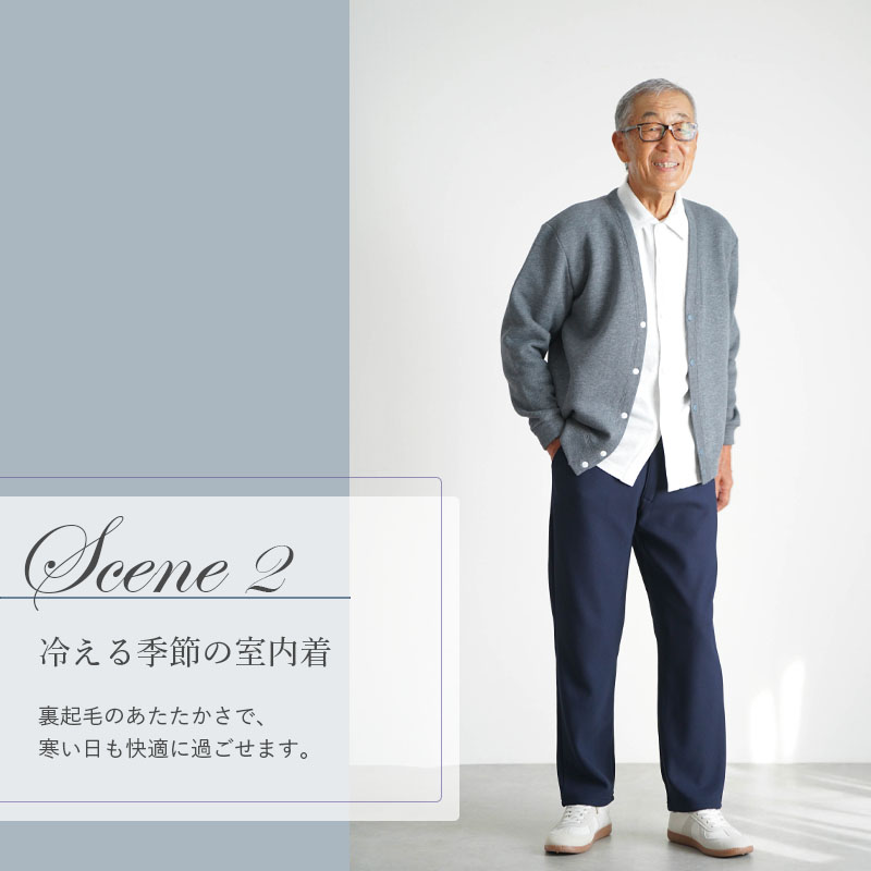 ●乾燥機対応にこだわって開発した、メンズ用裏起毛カーディガンです。