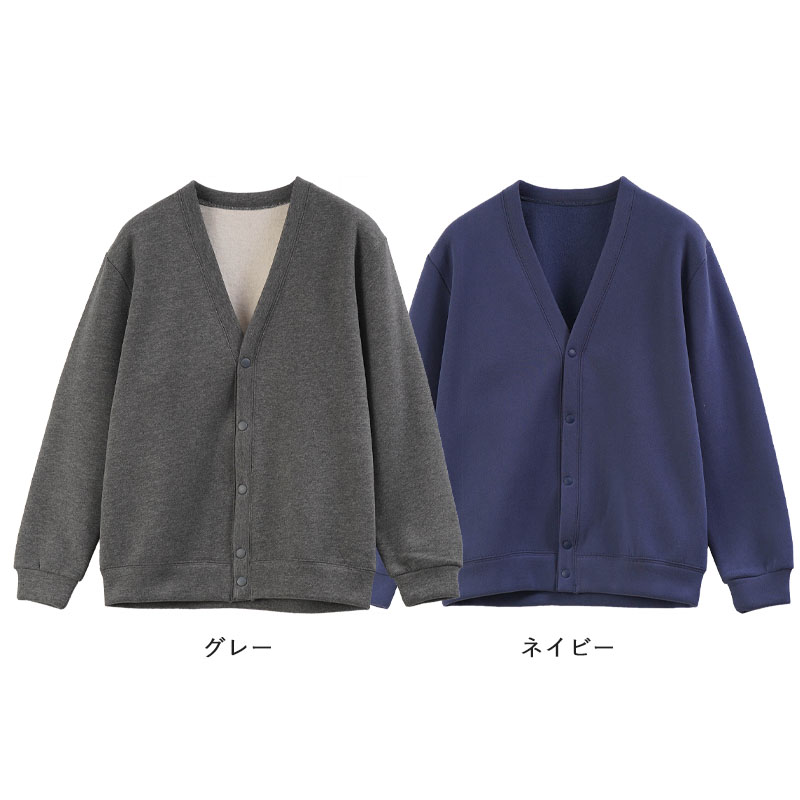 [装生] 乾燥機対応 綿混 裏起毛 スナップボタン カーディガン