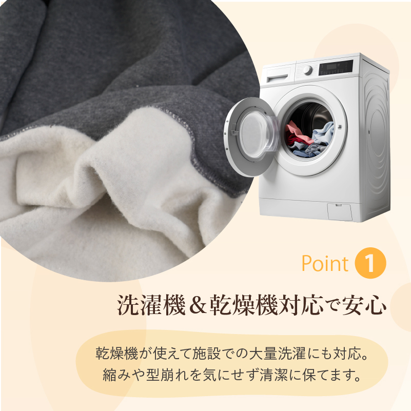 ●洗濯機と乾燥機の両方に対応しているため、老人ホームやご家庭でのお手入れがとても簡単。