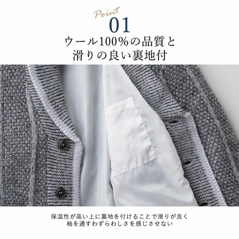 ウール100% 裏地付き ヘチマ襟カーディガン