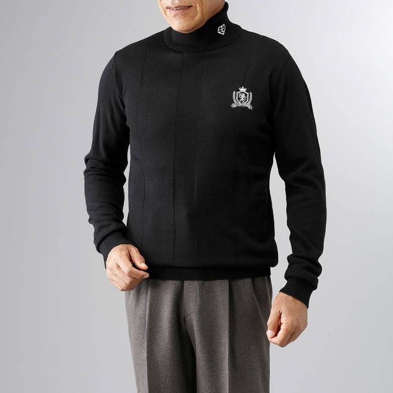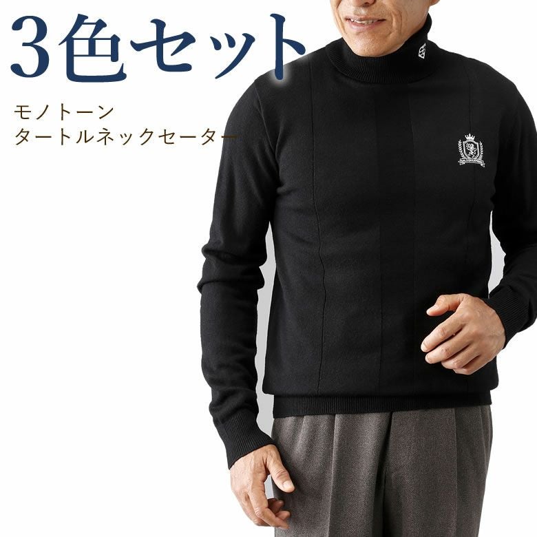 さりげない編み柄とブランドロゴ刺繍がアクセント。 シックな3色はコーディネイトしやすく、大人のお洒落にぴったりです。 首まで暖かいハイネック仕様で寒い季節も快適にお過ごし頂けます。 ■素材アクリル100%■カラーブラック、グレー、ホワイト の同サイズ3色組 ■仕様柄は前身頃のみ、背面は無地 襟高:約6cm(折った状態)■洗濯洗濯機可