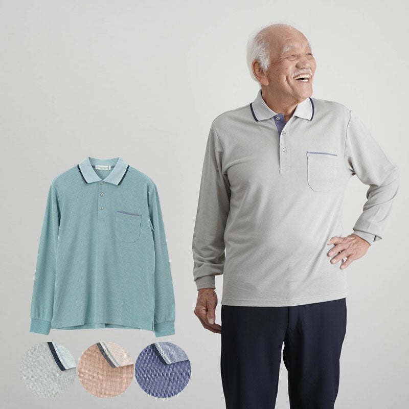 無地 バーズアイ鹿の子 長袖 ポロシャツ