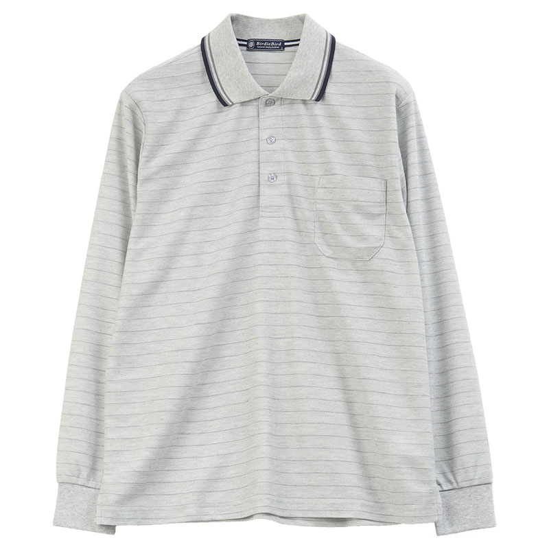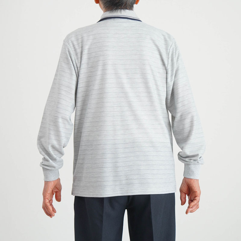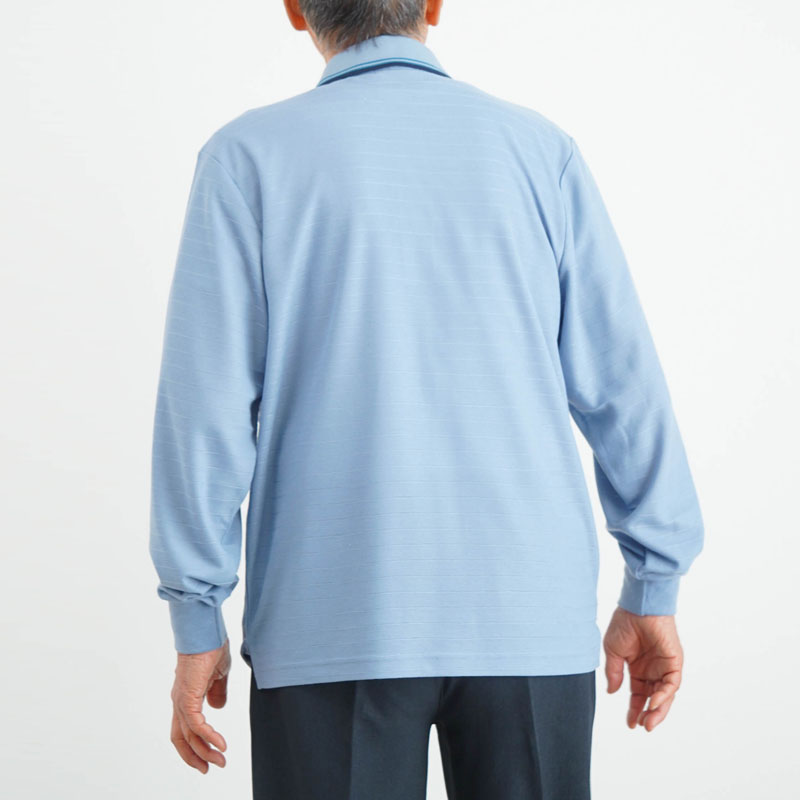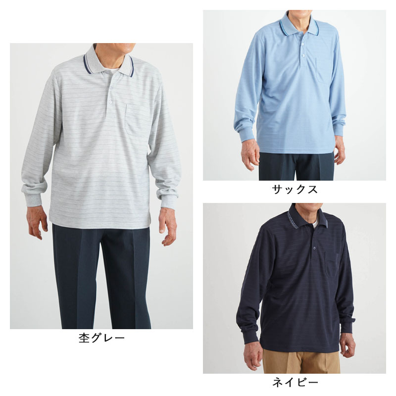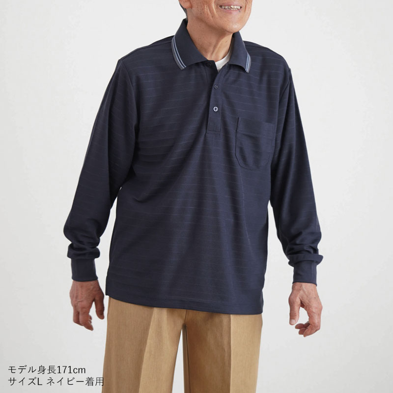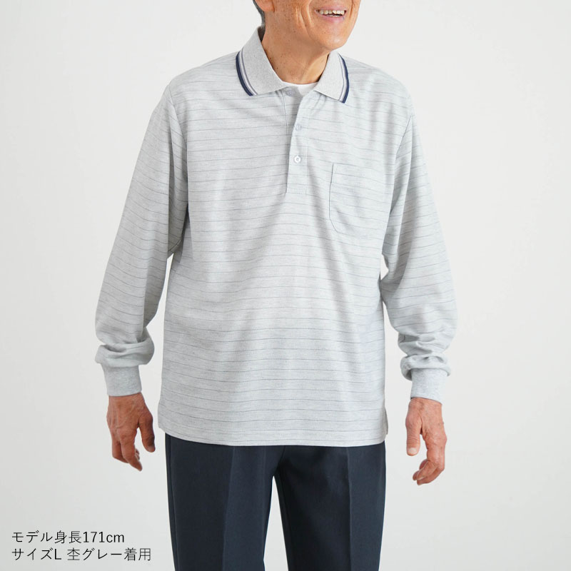 鹿の子 地柄ボーダー 長袖ポロシャツ