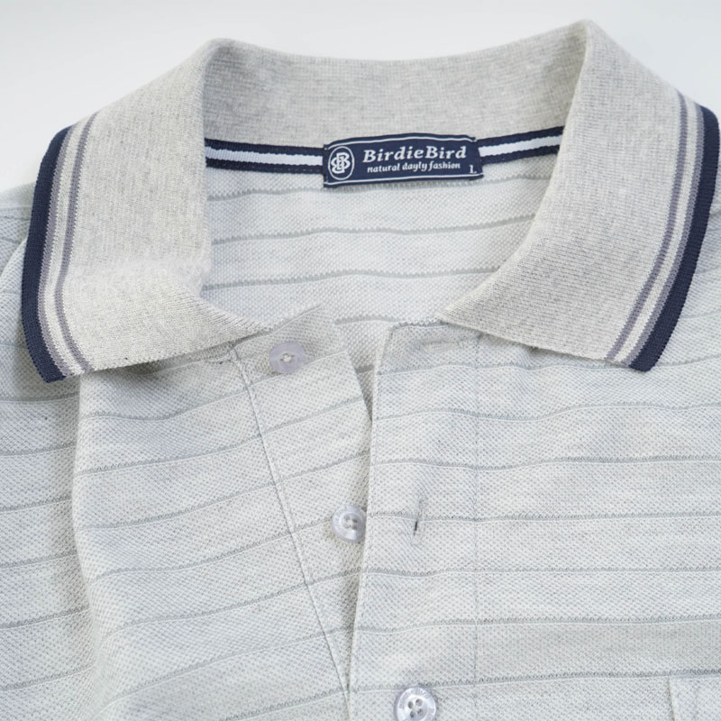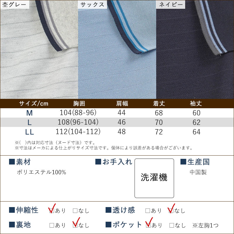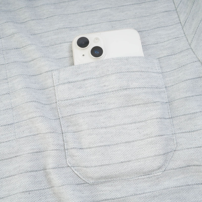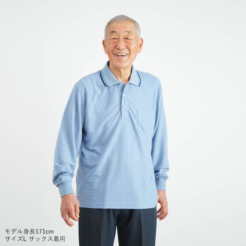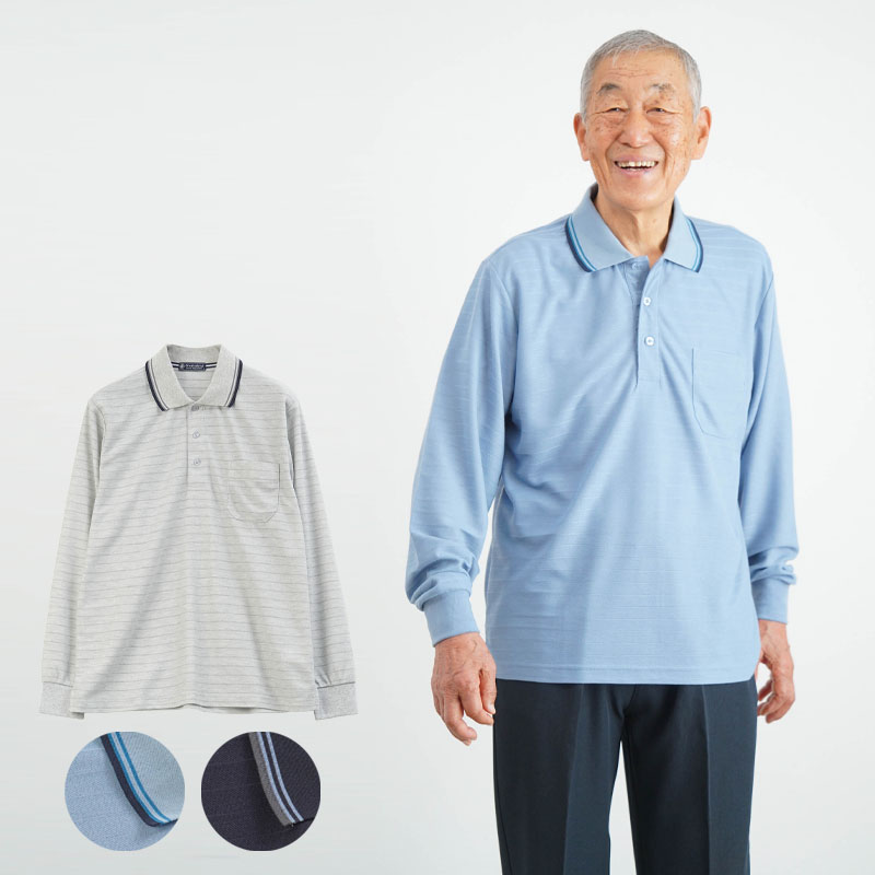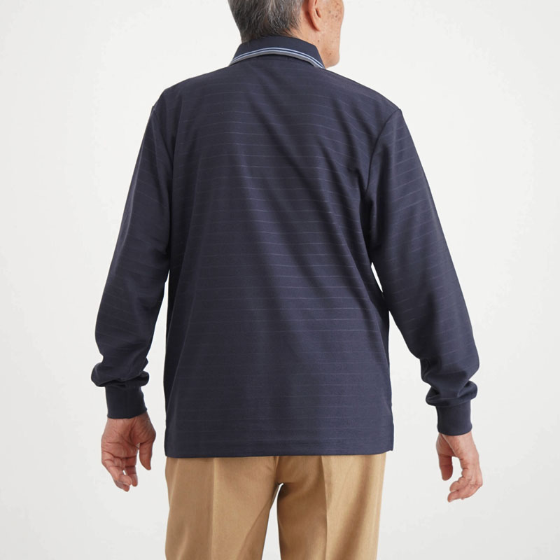 鹿の子 地柄ボーダー 長袖ポロシャツ