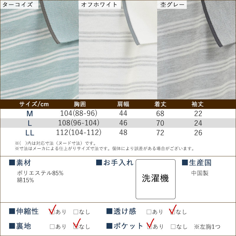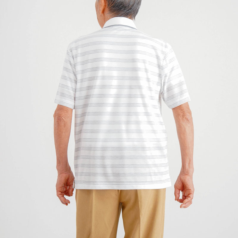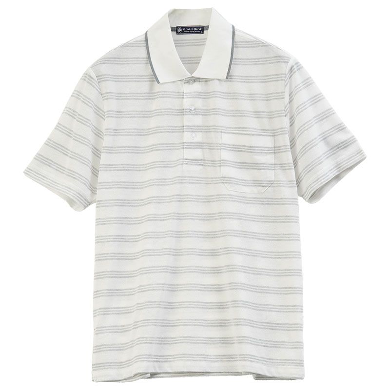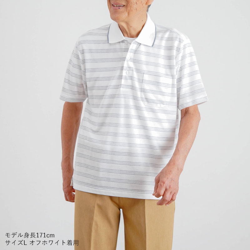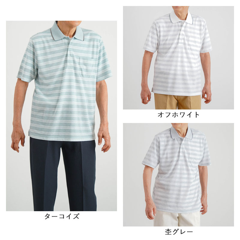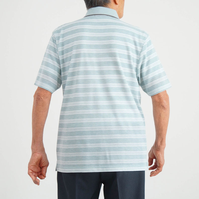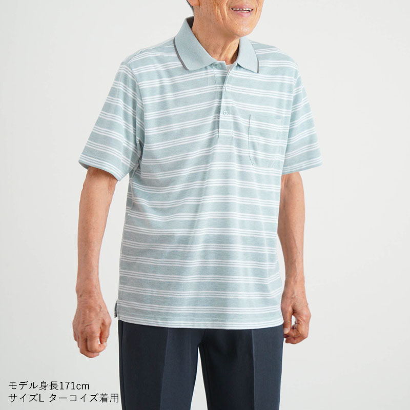 綿混 鹿の子 先染めボーダー 半袖ポロシャツ
