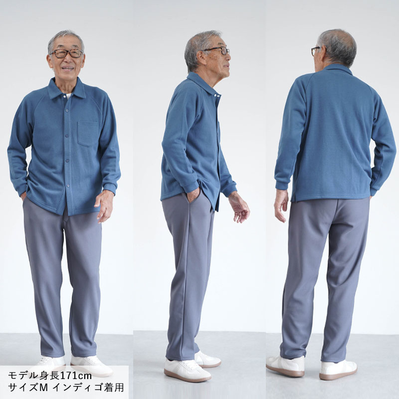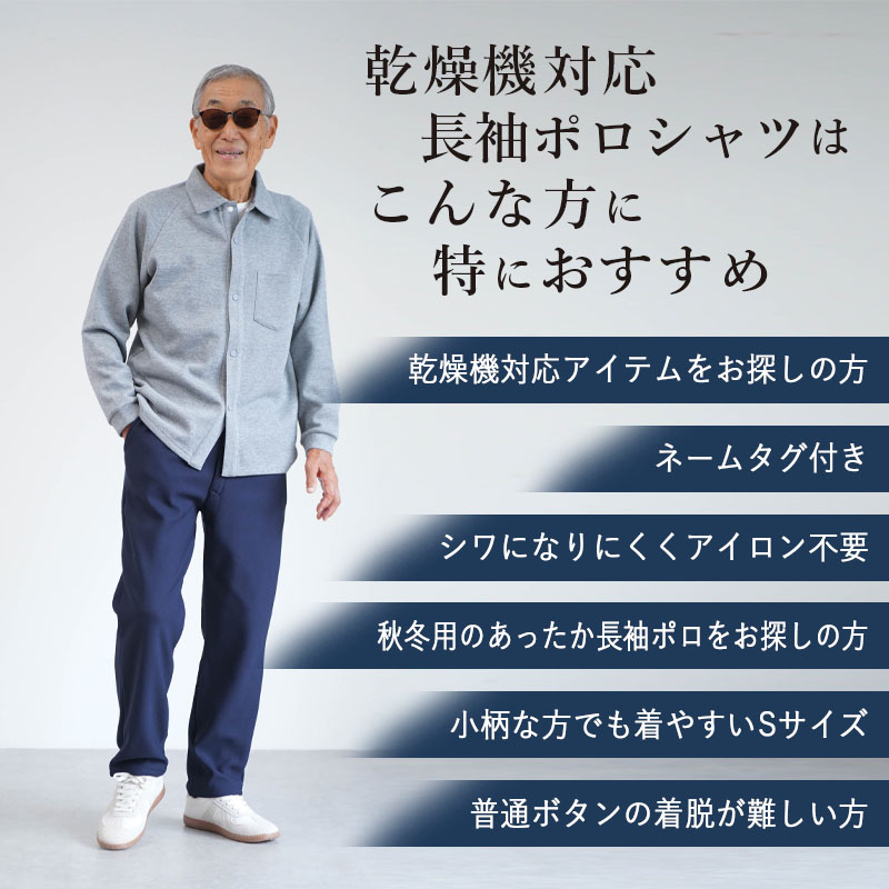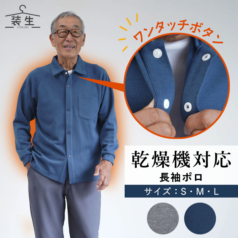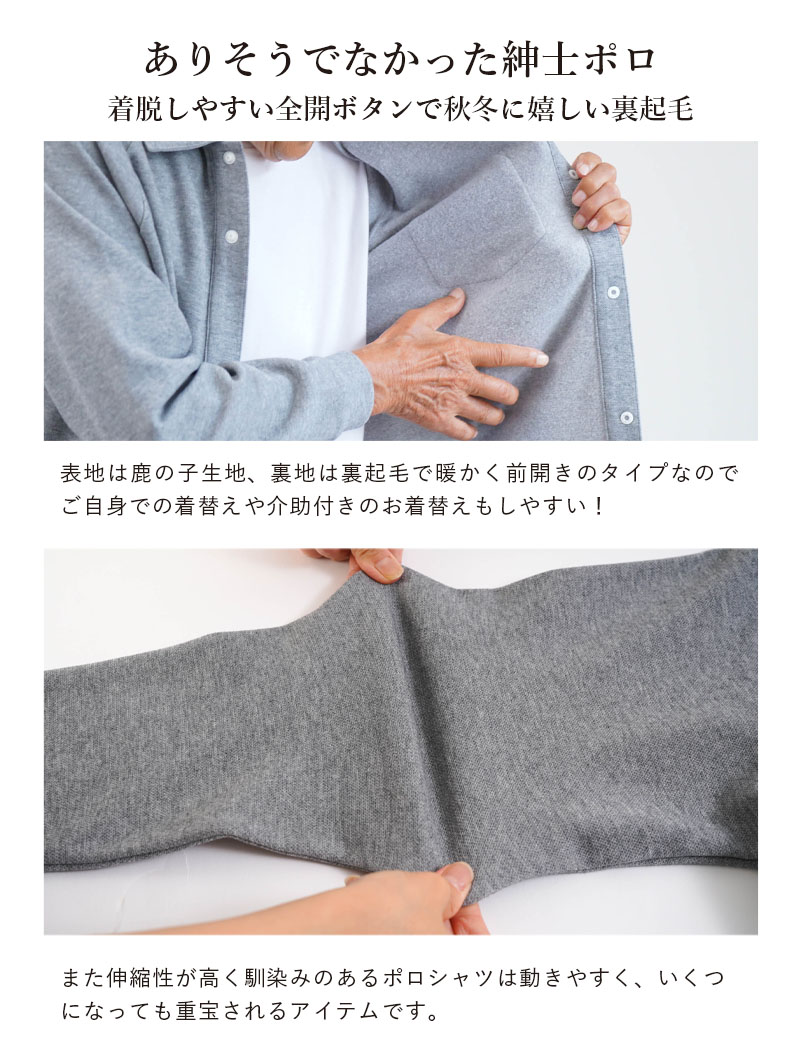 [装生] 乾燥機対応 紳士 あったか裏起毛 前開き スナップボタン ポロシャツ