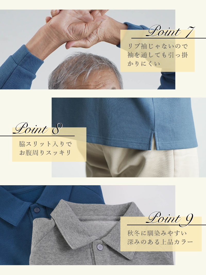 ●ラグラン袖で肩周りの動きやすさを確保。特に腕が上がりにくい方にも快適にご利用いただけるデザインです。