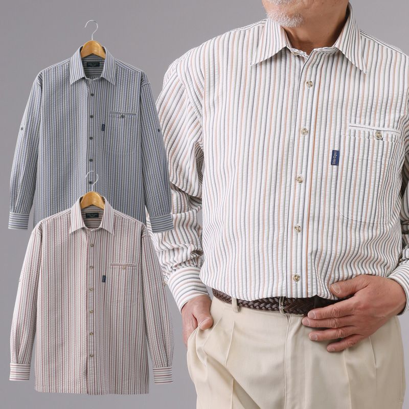 サッカー生地 ストライプ柄 シャツ 3色組 セット