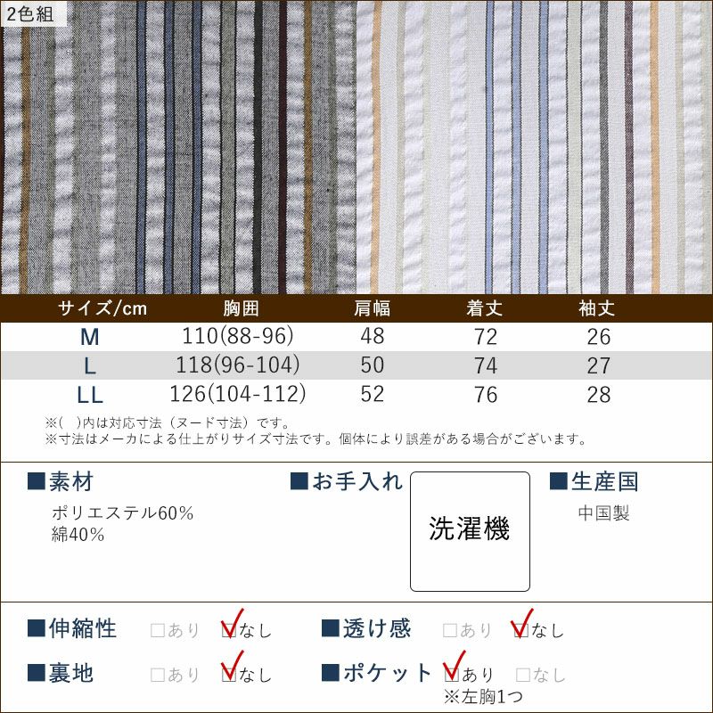 サッカー生地 さわやかストライプ 半袖シャツ 2色組