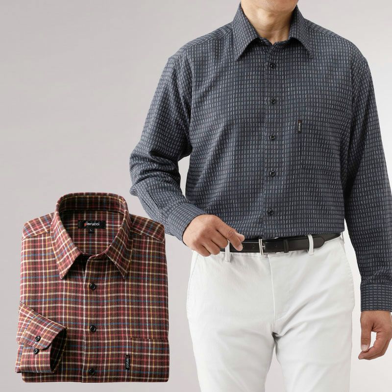 落ち着いた雰囲気の暖かウール入りシャツのセットです。