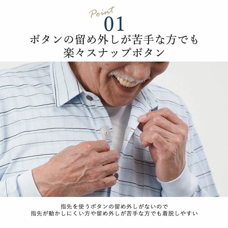 ●スナップボタンを採用しているため、着脱が簡単で操作もシンプル。指先が不自由な方でもストレスなくお使いいただけます。