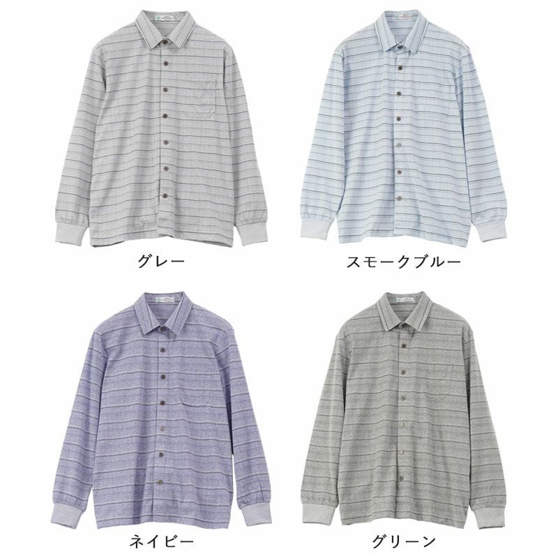 麻混 チェック柄 夏長袖 スナップボタンニットシャツ