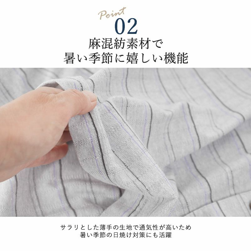 ●麻混素材が通気性を高め、暑い季節でも快適に過ごせます。さらに、お手入れも簡単で長くご愛用いただけます。