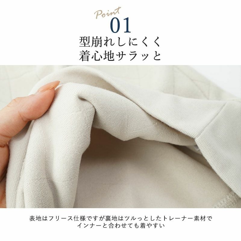 ●表地はフリースで裏地はサラッとしたトレーナー生地なので裏地がごわつくのが苦手な方には特におすすめ