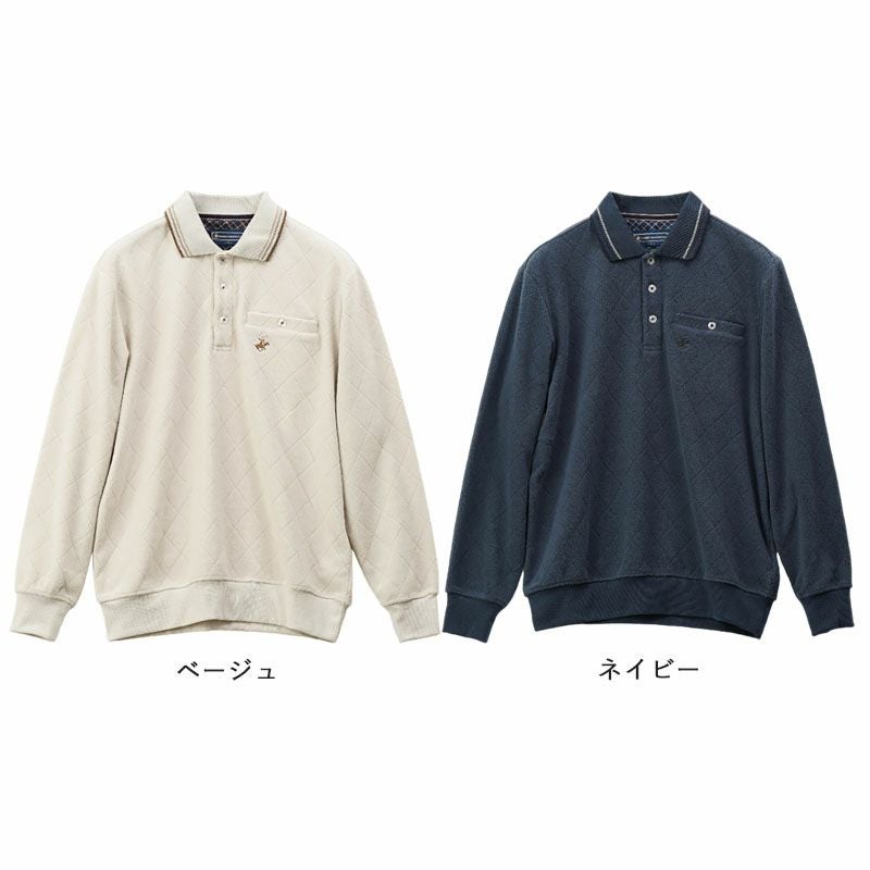 ●さりげないダイヤ柄ときちんと感のあるポロ襟・シェル風ボタンで上品さを感じさせるデザイン