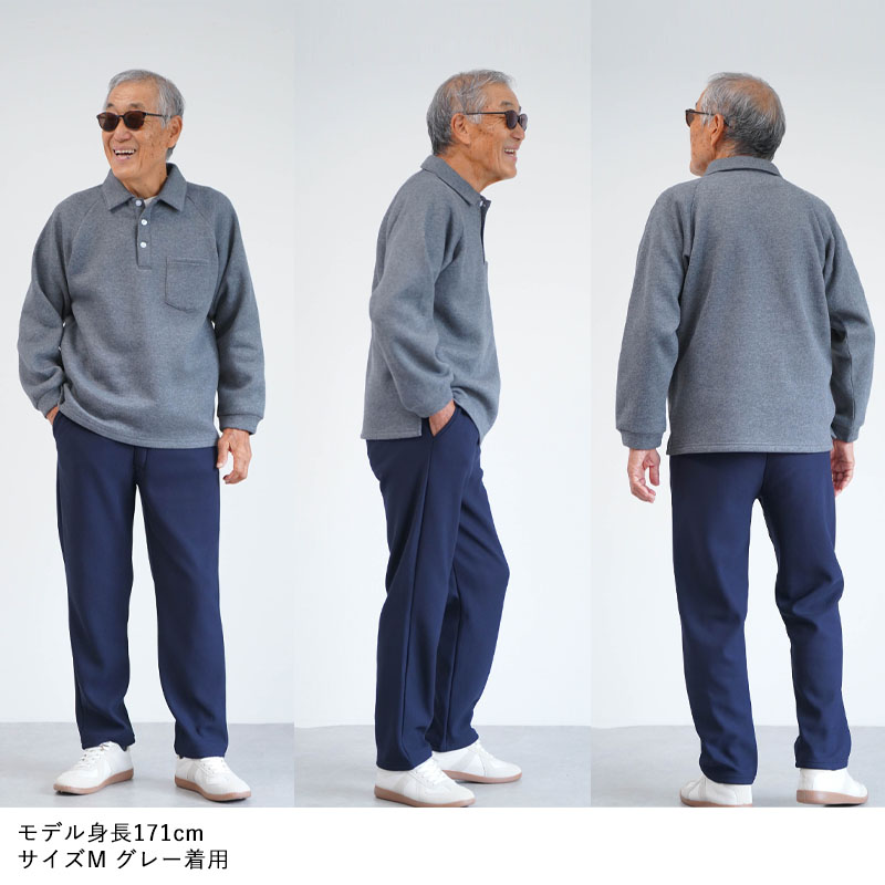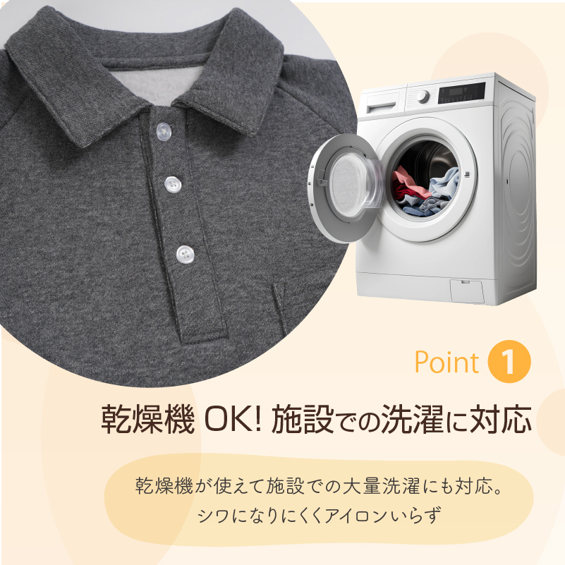 ●乾燥機対応にこだわって開発した、メンズ用裏起毛ポロトレーナーです。