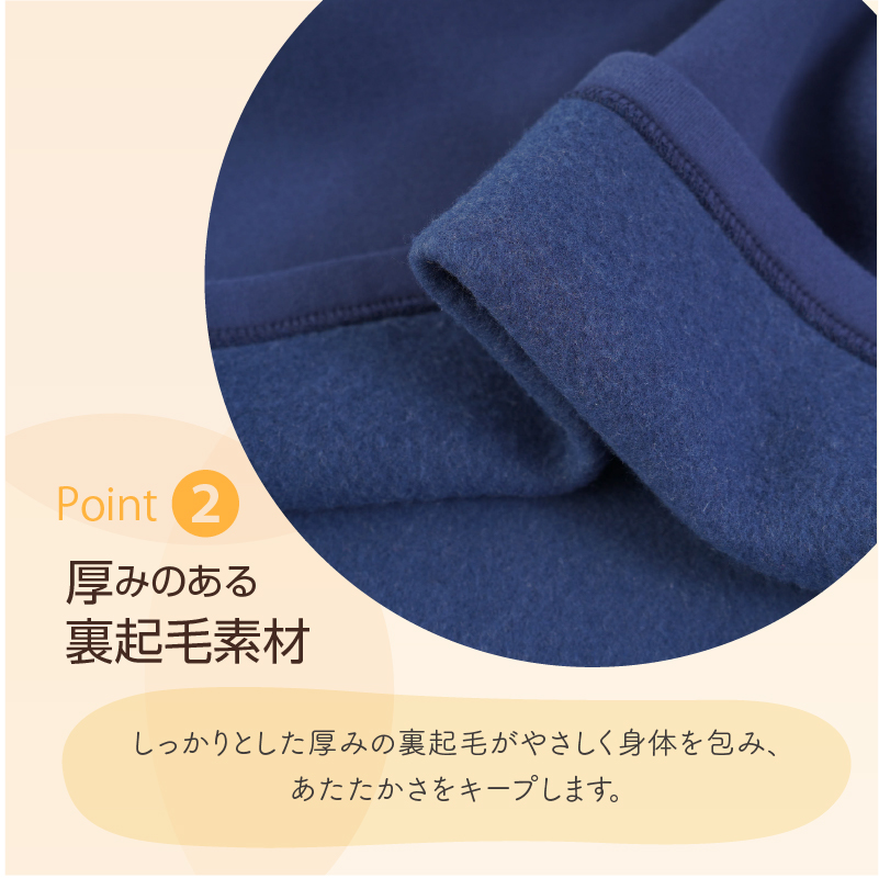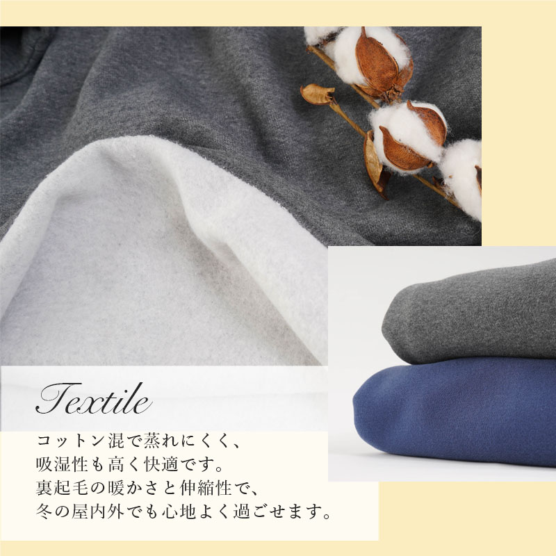 ●裏起毛でしっかり厚みがあり、ストレッチ性やラグラン袖設計により楽な着心地を実現しました。