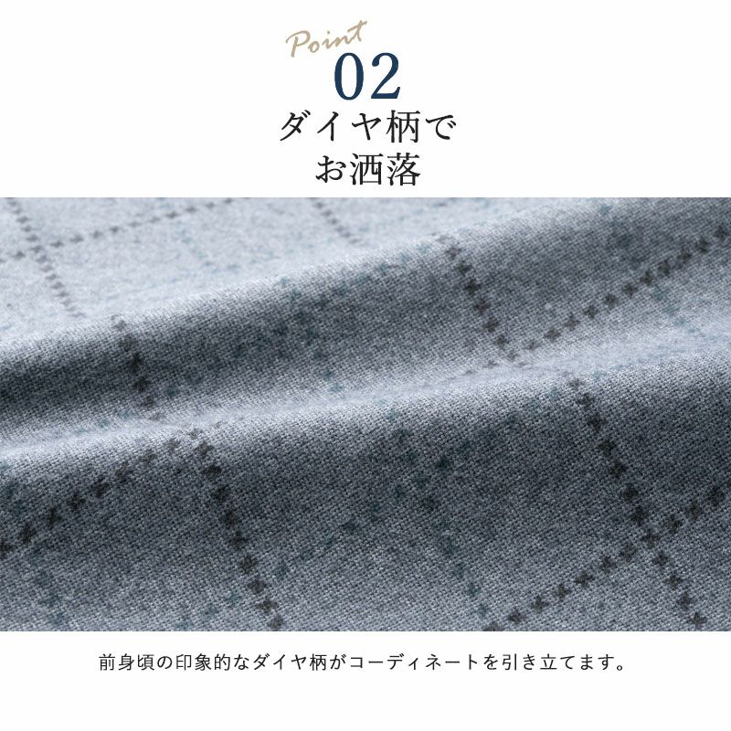 ●お洒落なダイヤ柄デザイン:前身頃に施された印象的なダイヤ柄が特徴です。