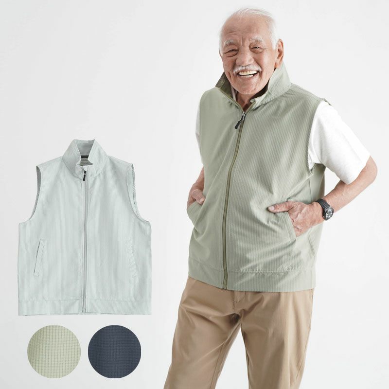ドットメッシュ サッカー素材 UVカット ジップアップベスト