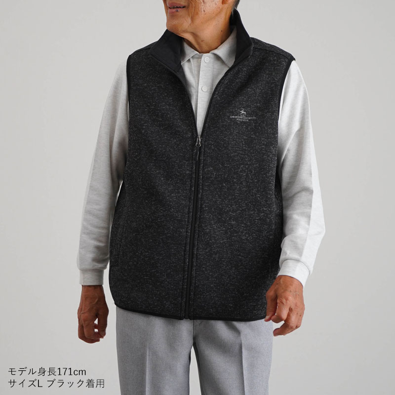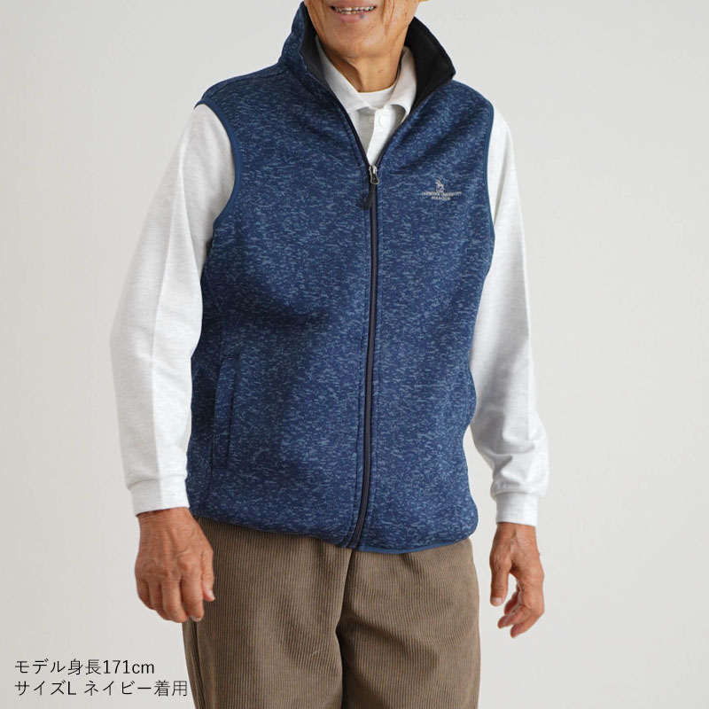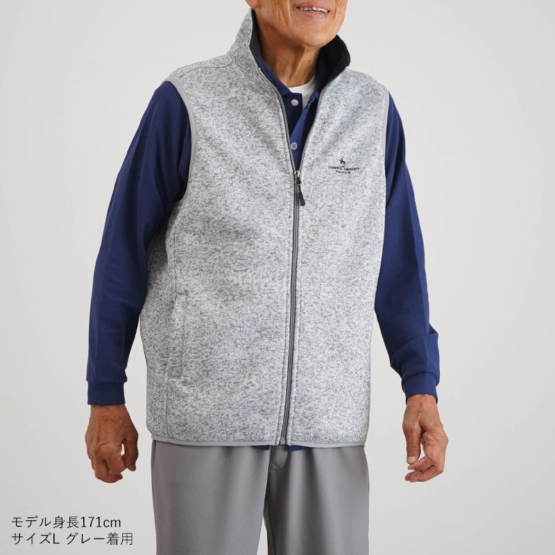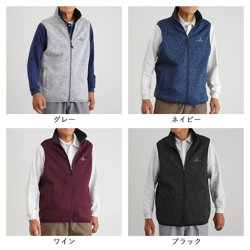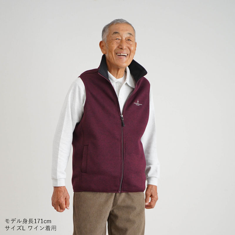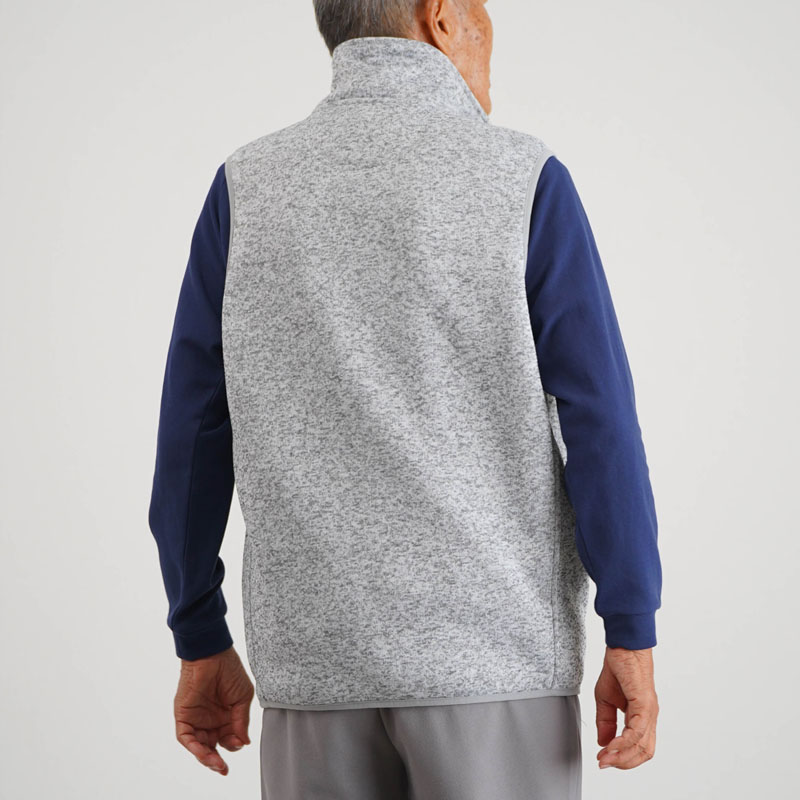 ●裏全面フリースで首元まで暖かい、軽量ニットフリースベスト。