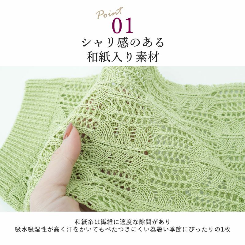 日本製 和紙使い 透かし柄 七分袖カーディガン