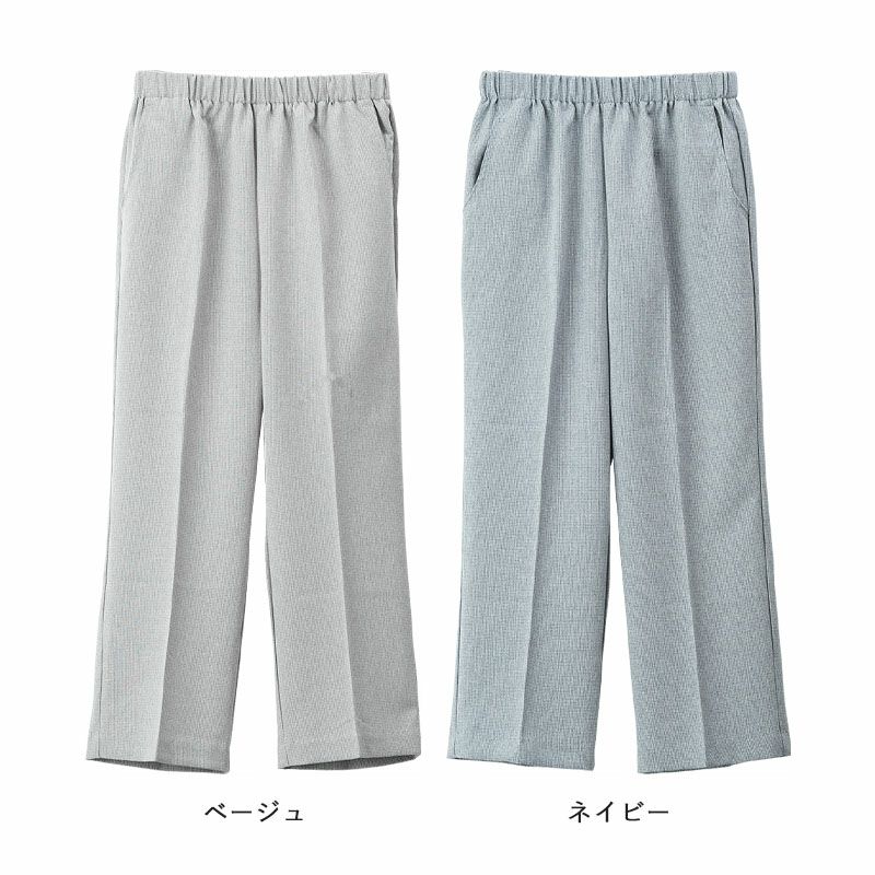 春夏用 乾燥機対応 UVカット 千鳥格子柄スラックスパンツ 股下63cm