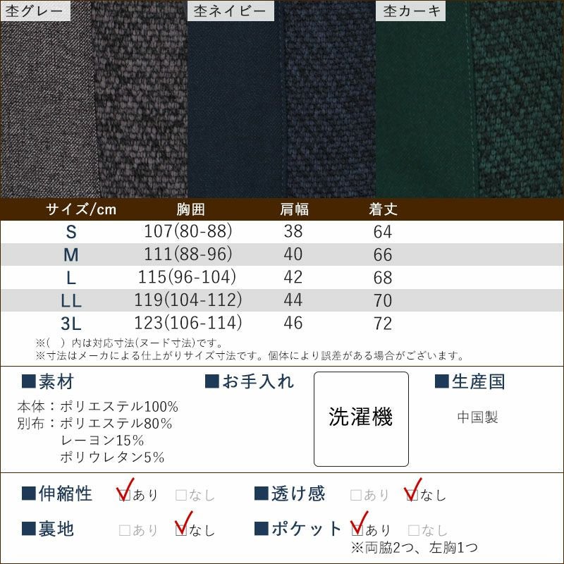 季節に合った春物、夏物、秋物、冬物はもちろん、大きいサイズや小さいサイズもお問い合わせください。