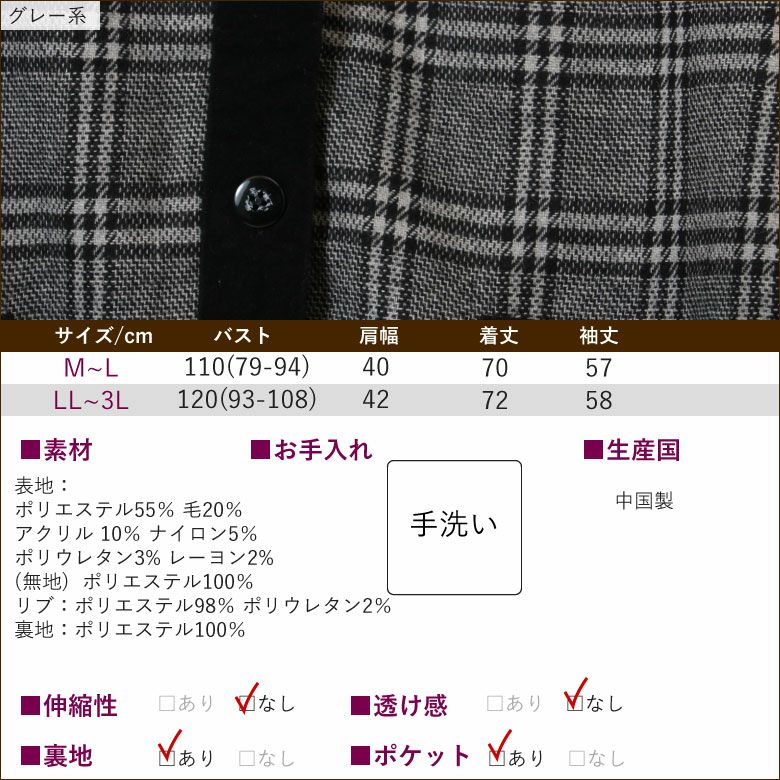 季節に合った春物、夏物、秋物、冬物はもちろん、大きいサイズや小さいサイズもお問い合わせください。