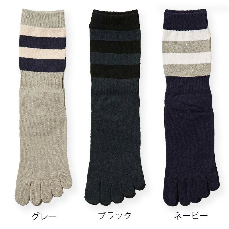 紳士用 シルク5本指ソックスボーダー柄