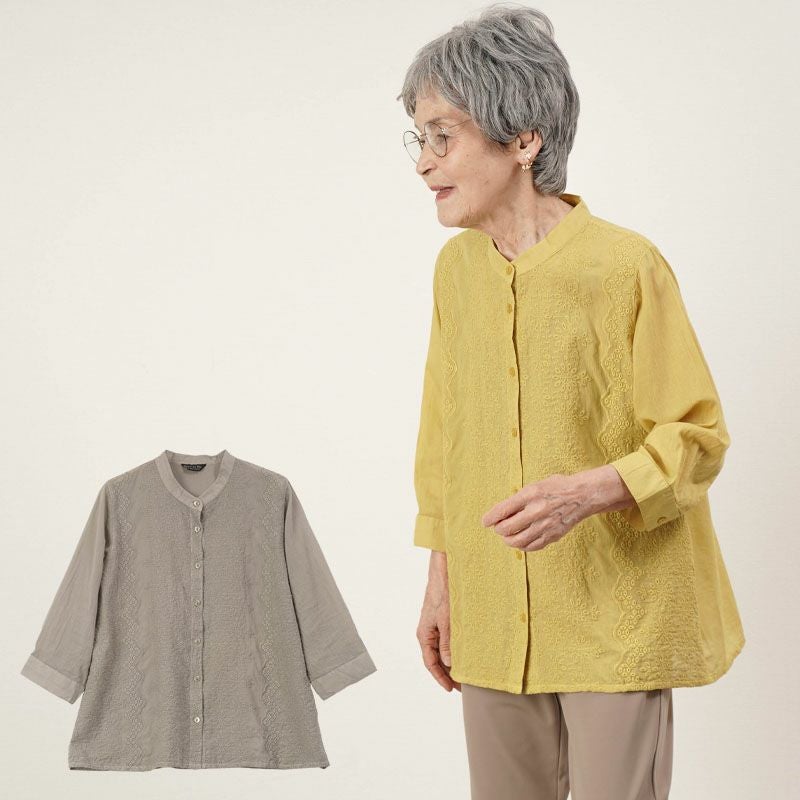 紳士用 前開き両肩腕開き7分袖シャツ