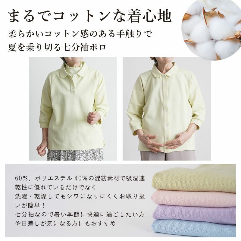 紳士用 TioTio前開き7分袖シャツ(ラグラン袖)