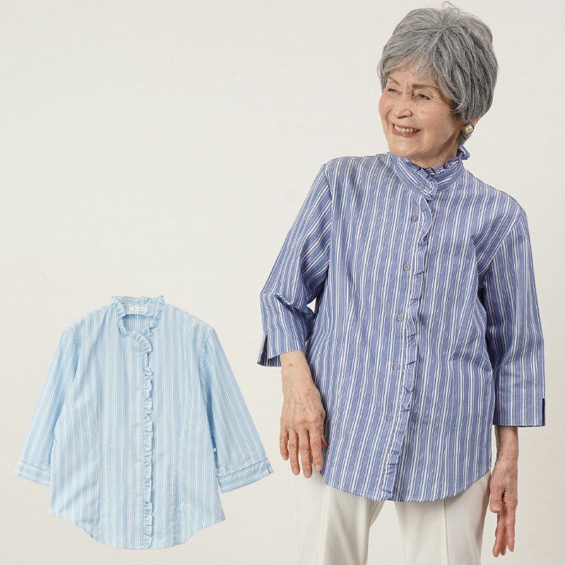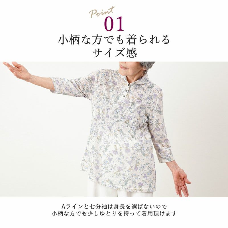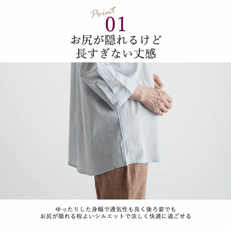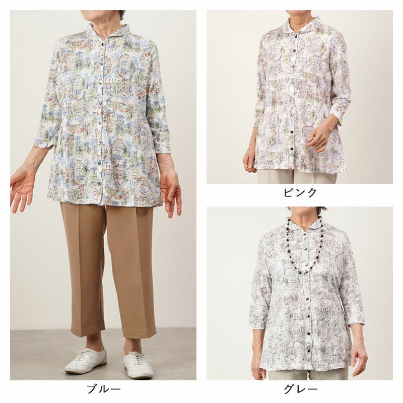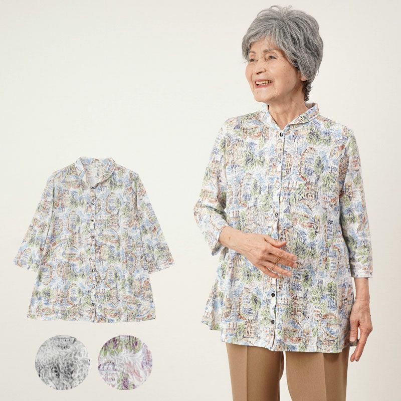 婦人用 TioTio前開き7分袖シャツ(ラグラン袖)