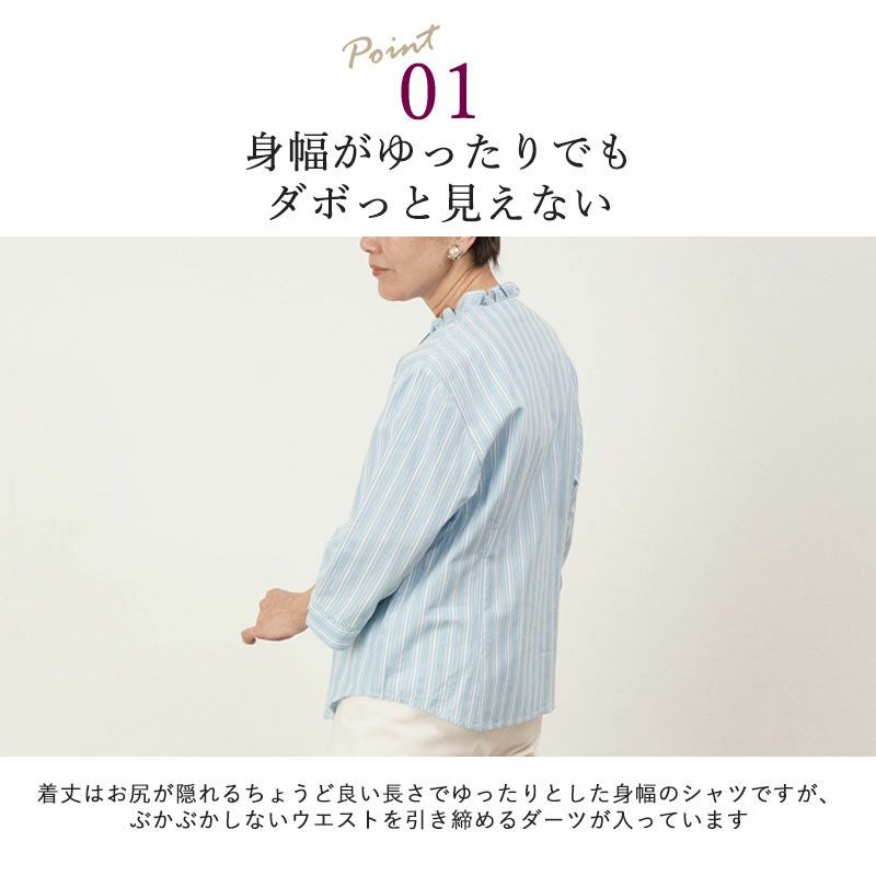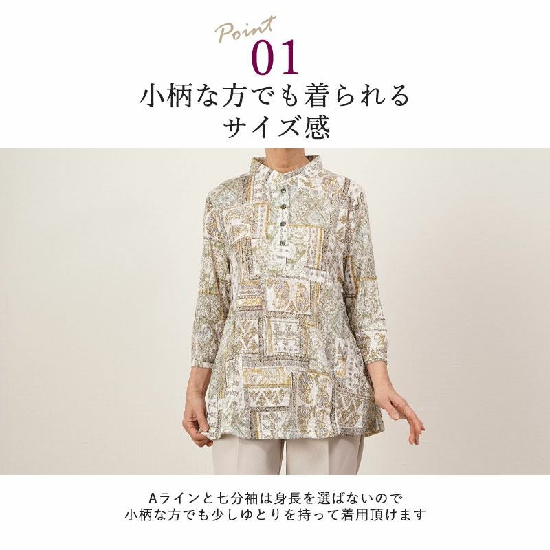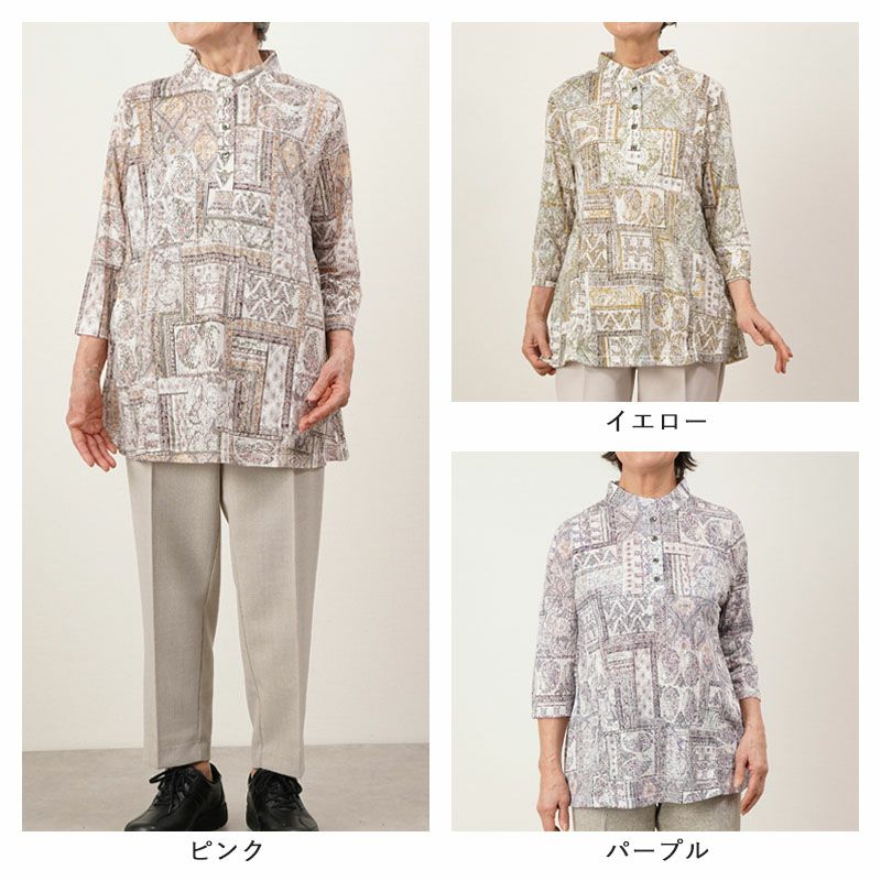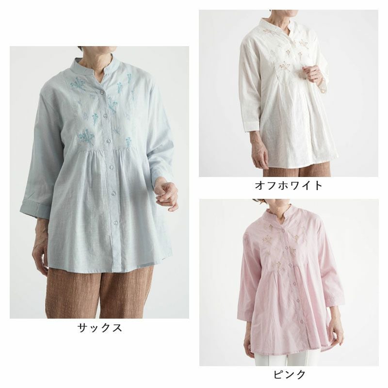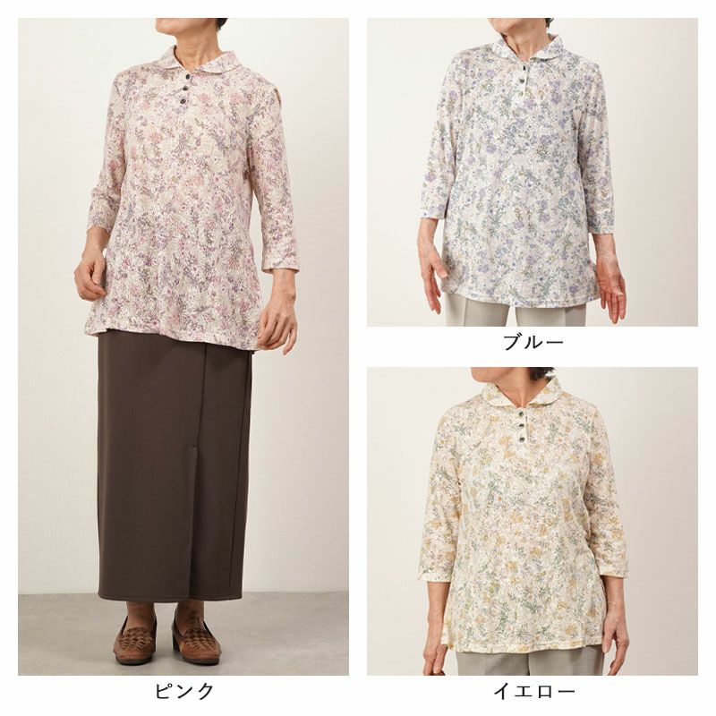 婦人用 TioTio前開き7分袖シャツ(ラグラン袖)