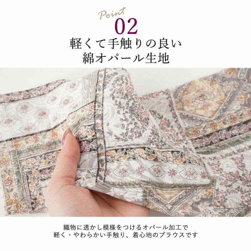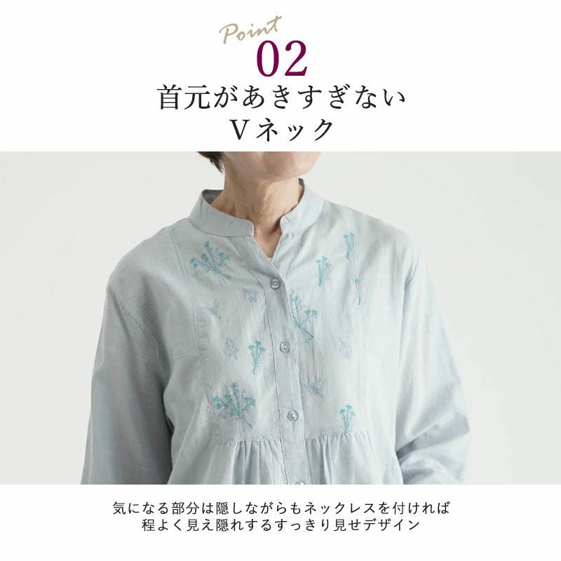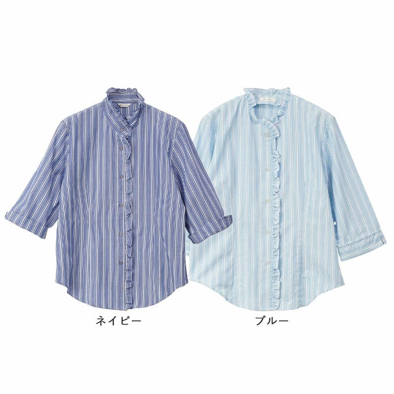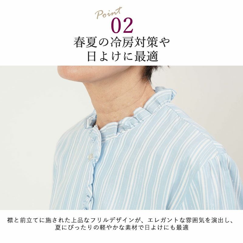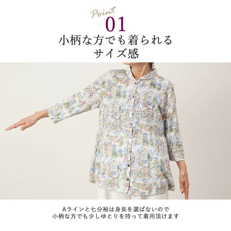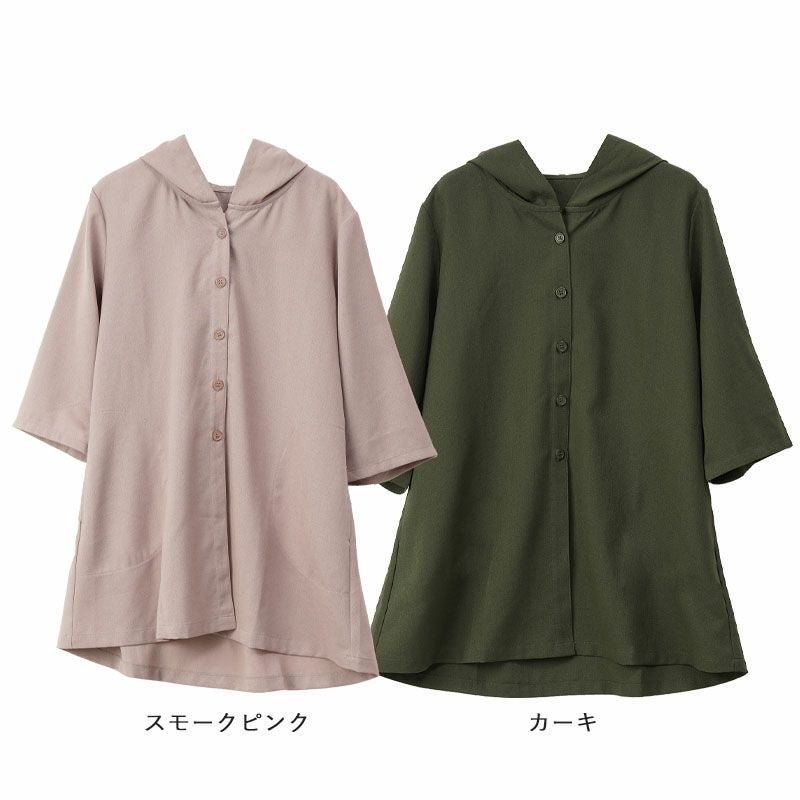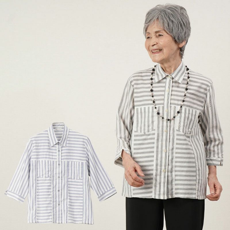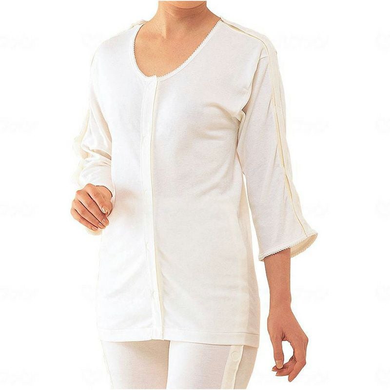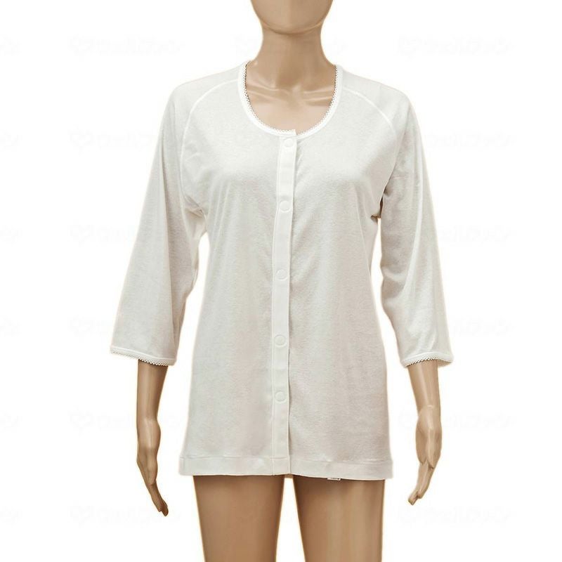 婦人用 ひば前開き7分袖シャツ(ラグラン袖)