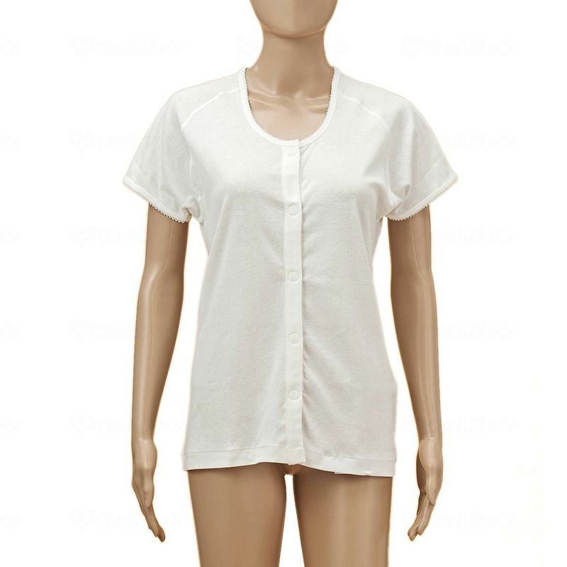 婦人用 ひば前開き5分袖シャツ(ラグラン袖)