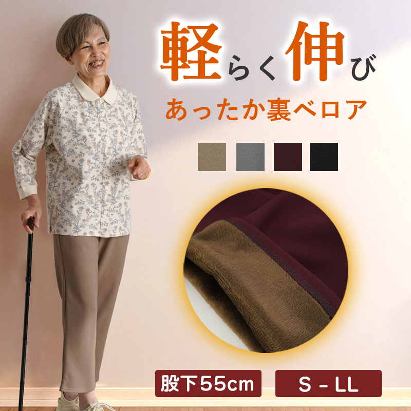 【おしゃれと着やすさを両立】あったか裏ベロア ゴム入れ替え かるらくのびパンツ