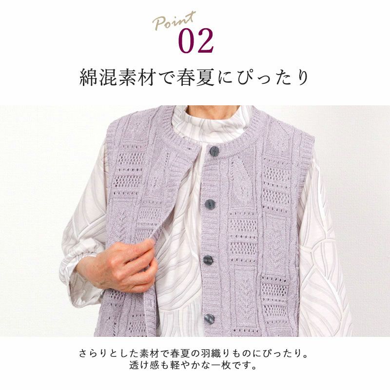 他の画像を見る 送料無料 ギフト対応 春夏 [CW] ケーブルコットンニット 前開きベスト 通常 ¥ 6,490 のところ 在庫限りアウトレット価格 ¥ 5,192 税込 詳細を見る お気に入りに登録する