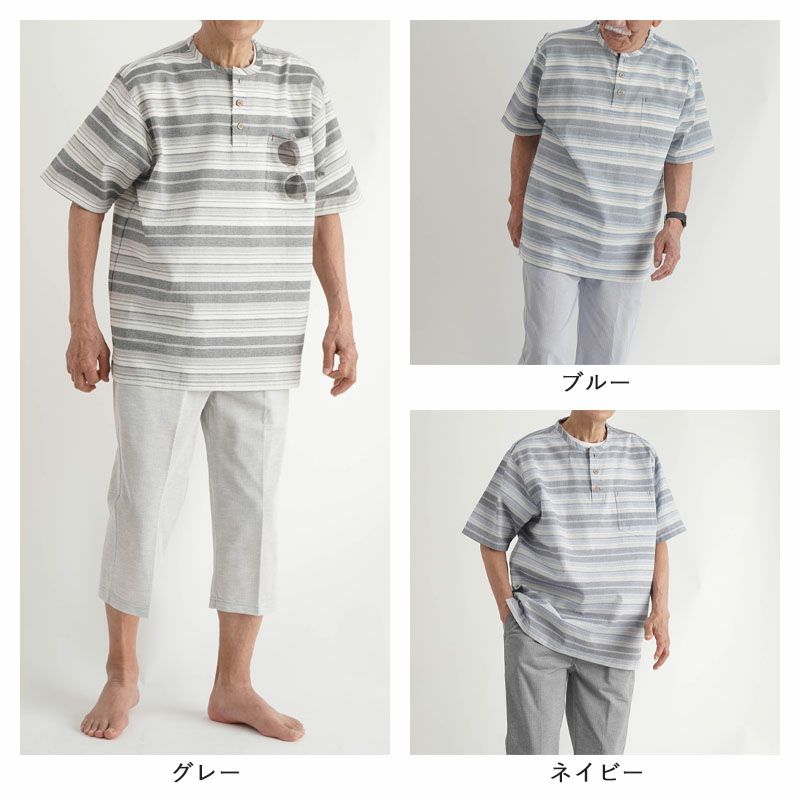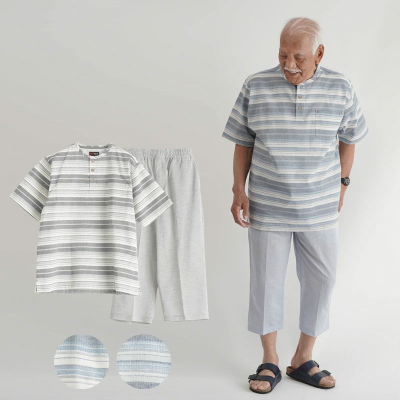 他の画像を見る 送料無料 ギフト対応 春夏 綿混 しじらボーダー 半袖シャツと七分丈ズボン 部屋着上下セット 通常 ¥ 6,990 のところ 在庫限りアウトレット価格 ¥ 5,592 税込 詳細を見る お気に入りに登録する