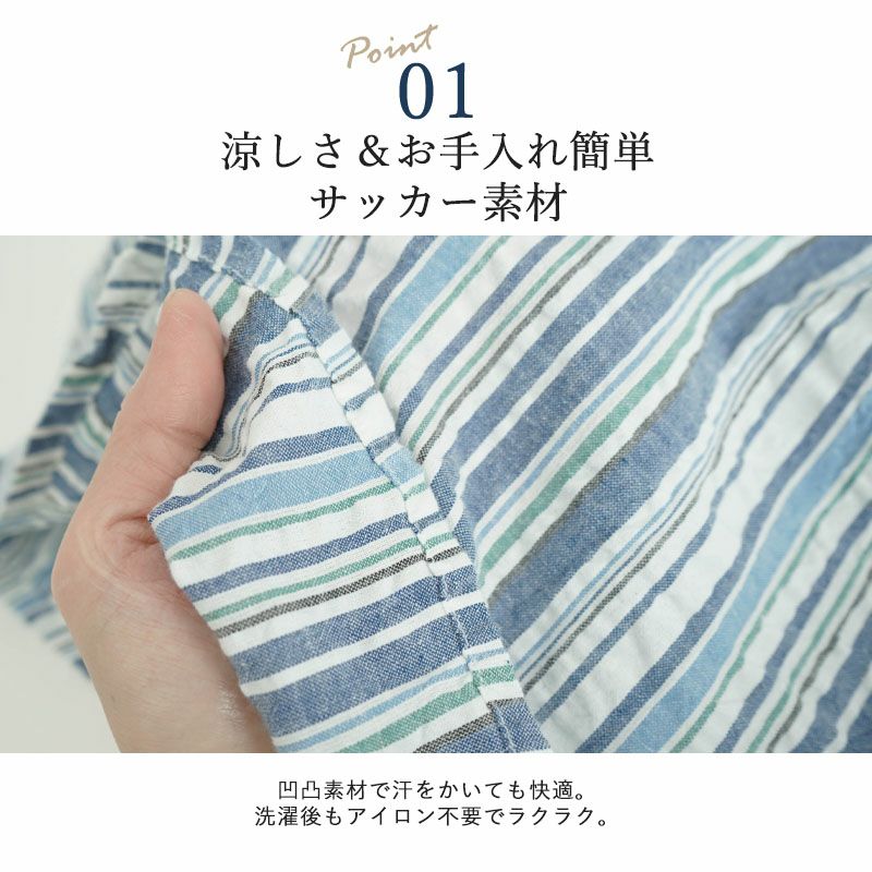 他の画像を見る 送料無料 ギフト対応 春夏 綿混 しじらボーダー 半袖シャツと七分丈ズボン 部屋着上下セット 通常 ¥ 6,990 のところ 在庫限りアウトレット価格 ¥ 5,592 税込 詳細を見る お気に入りに登録する